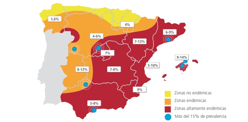 Es una enfermedad prevalente en Europa, mayoritariamente en países de la cuenca mediterránea.